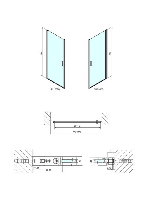 Polysan Zoom Line Black zuhanyajtó 80x200 cm transzparent üv