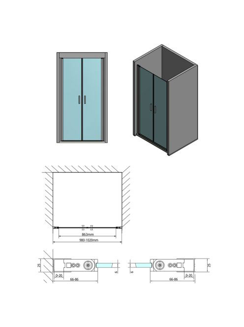 Polysan Zoom Line duplaszárnyú zuhanyajtó 100x190 cm transzp