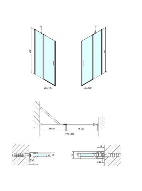 Polysan Zoom Line zuhanyajtó 100x190 cm transzparent üveg, kPolysan Zoom Line zuhanyajtó 100x190 cm transzparent üveg, k