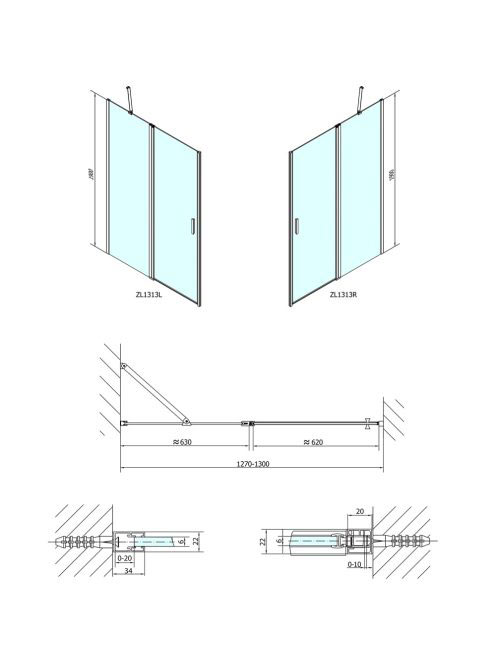Polysan Zoom Line zuhanyajtó 130x190 cm transzparent üveg, k