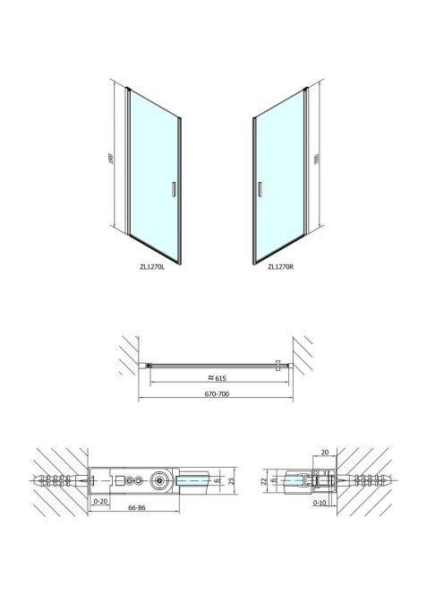 Polysan Zoom Line zuhanyajtó 70x190 cm transzparent üveg, kr