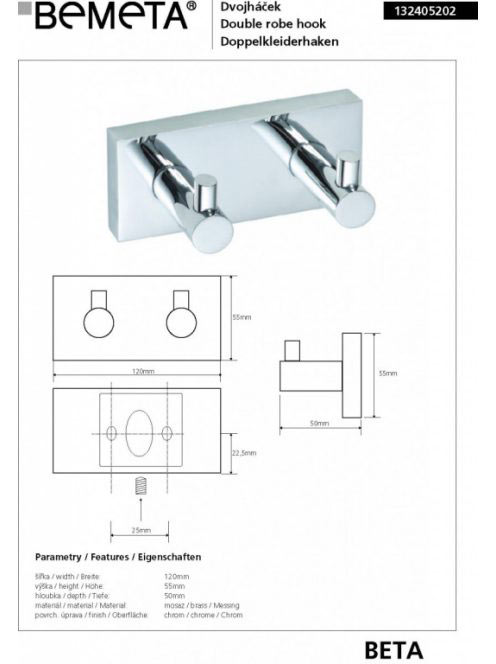 Sapho BETA dupla fogas 120x55x50 mm 132405202 - Fürdőszoba -