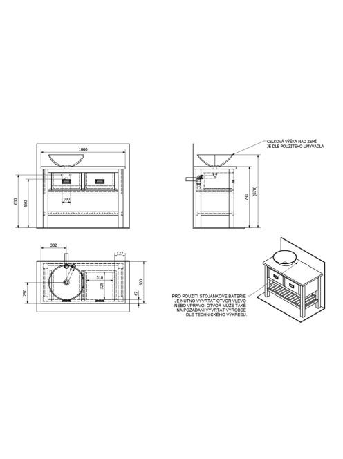 Sapho Brand 2 fiókos mosdótartó szekrény 100x73x50 cm, barna