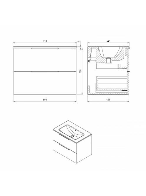 Sapho Cirasa mosdótartó szekrény 2 fiókkal 69,8x52x46 cm, féSapho Cirasa mosdótartó szekrény 2 fiókkal 69,8x52x46 cm, fé