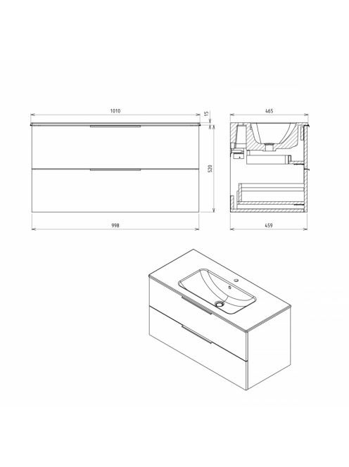 Sapho Cirasa mosdótartó szekrény 2 fiókkal 99,8x52x46 cm, fé
