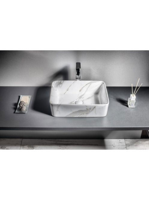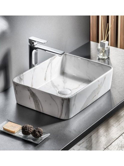 Sapho Dalma kerámia mosdó 48x38 cm, fehér márvány mintázatta