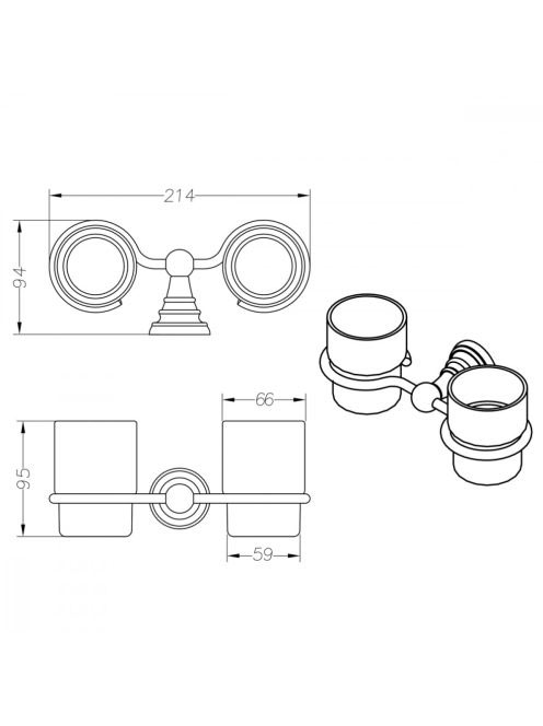 Sapho Diamond dupla pohár tartó, króm 1317-05 - Fürdőszoba -