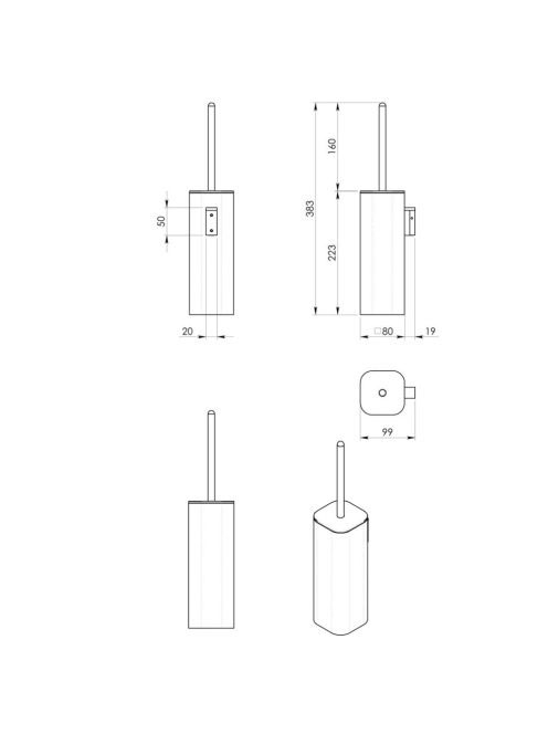 Sapho Flori fali WC-kefe, matt fekete 32330314 - Fürdőszoba