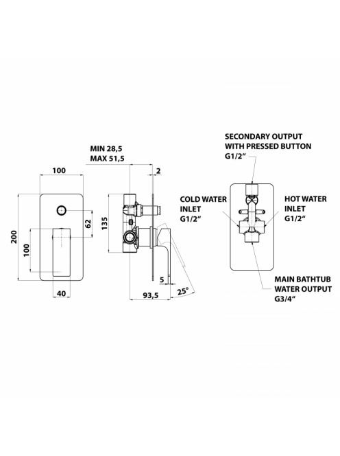Sapho Forata egykaros falba építhető 2 irányú csaptelep, matSapho Forata egykaros falba építhető 2 irányú csaptelep, mat