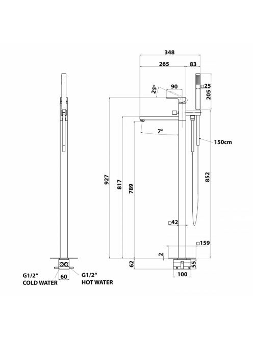 Sapho Forata egykaros térbenálló kádtöltő csaptelep, matt fe