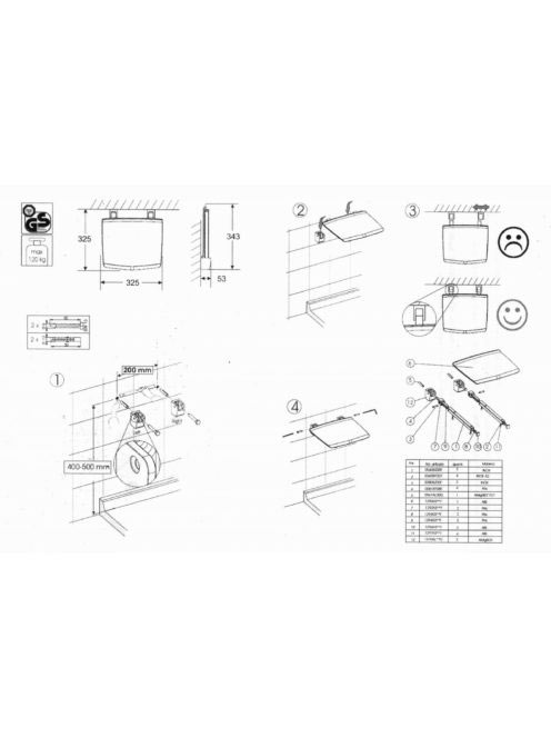 Sapho Gelco lehajtható zuhanykabin ülőke 32,5x32,5 cm sötét