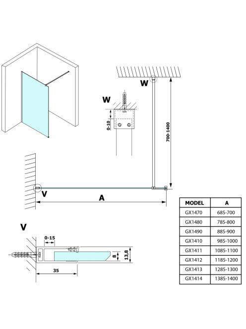 Sapho Gelco Vario Walk-In zuhanyfal 90x200 cm, matt üveg, ke
