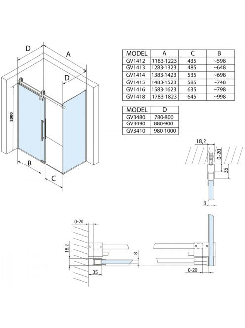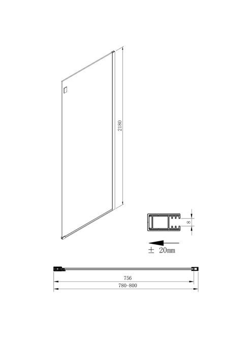 Sapho Gelco Volcano oldalfal 80 cm transzparent üveg, matt f