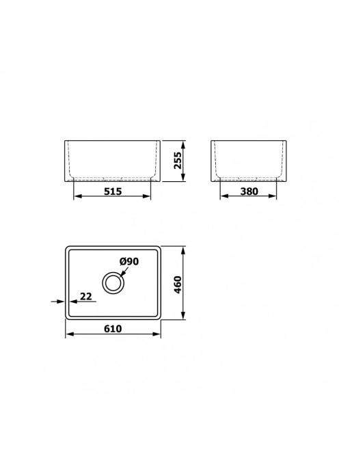 Sapho Glory félig beépíthető kerámiamosdó 61x46 cm, fehér 50