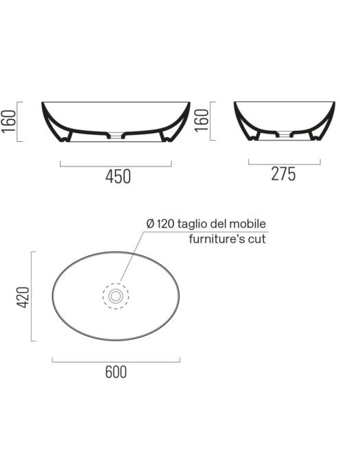 Sapho Gsi Pura pultra helyezhető kerámia mosdótál 60x42 cm,