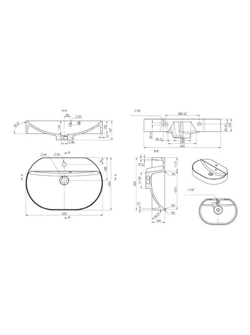 Sapho Helen öntött márvány mosdó 63x43 cm, fehér HE063 - Für