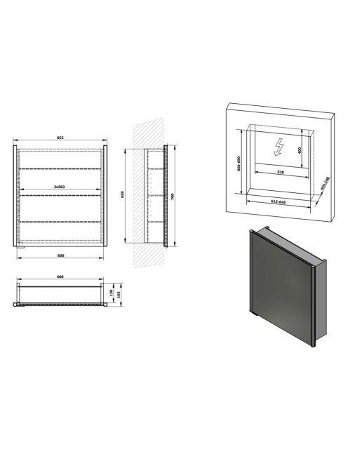 Sapho Integra LED-es falba építhető tükrös szekrény 65x70x16Sapho Integra LED-es falba építhető tükrös szekrény 65x70x16