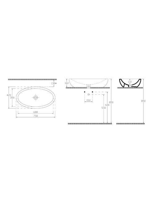 Sapho Isvea Sistema pultra szerelhető kerámia mosdó 75x42 cm