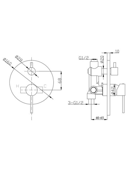 Sapho Kai falba süllyesztett zuhany csaptelep, 2 irányú vált