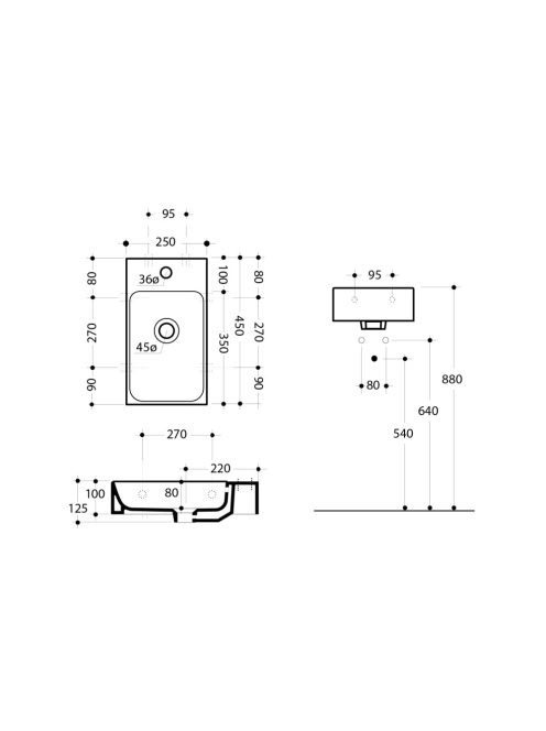 Sapho Kerasan Cento kerámia mosdó 45x25cm, fehér 353701 - FüSapho Kerasan Cento kerámia mosdó 45x25cm, fehér 353701 - Fü