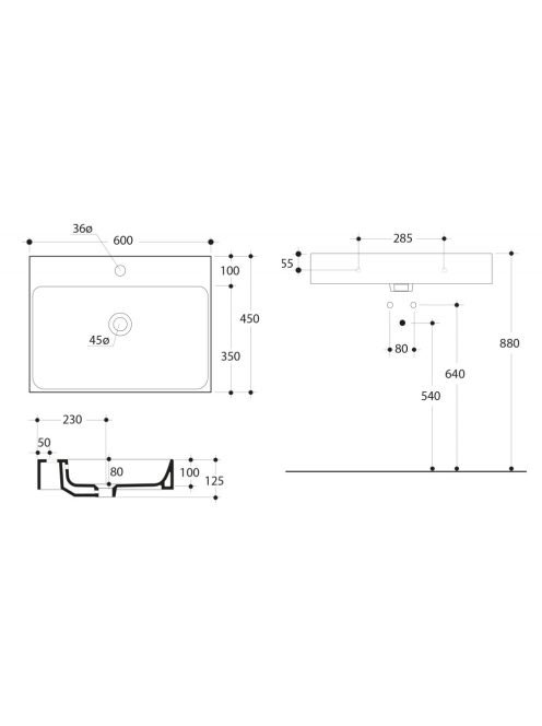 Sapho Kerasan Cento kerámia mosdó 60x45 cm, fehér 353101 - F