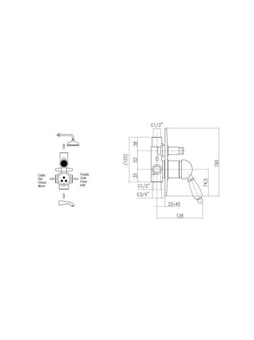 Sapho Kirké falba épített 2 irányú csaptelep fekete kerámiaSapho Kirké falba épített 2 irányú csaptelep fekete kerámia