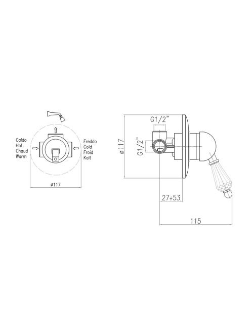 Sapho Kirké falba süllyesztett csaptelep 1-irányú váltóval, kristály karral, króm KI41KC