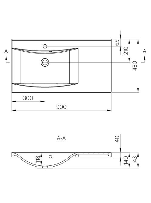 Sapho Luciola balos öntöttmárvány mosdó 90x48 cm túlfolyóval