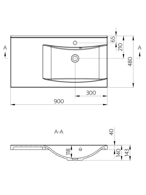 Sapho Luciola jobbos öntöttmárvány mosdó 90x48 cm túlfolyóva