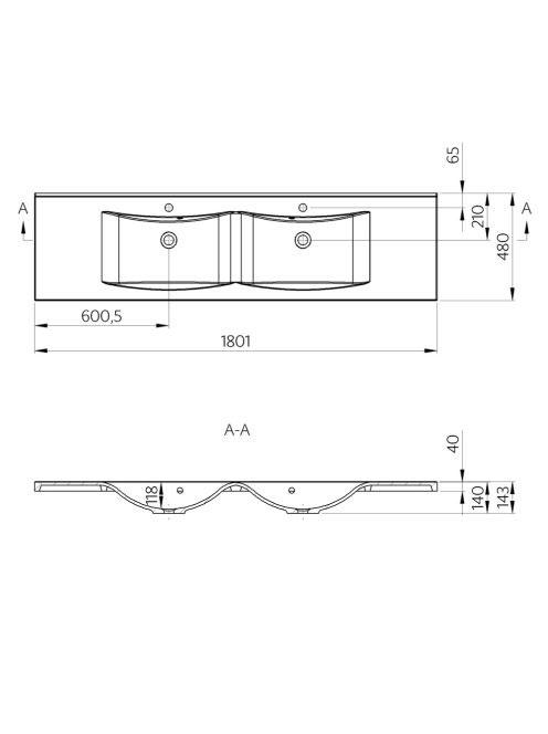 Sapho Luciola öntöttmárvány duplamosdó 180x48 cm túlfolyóval
