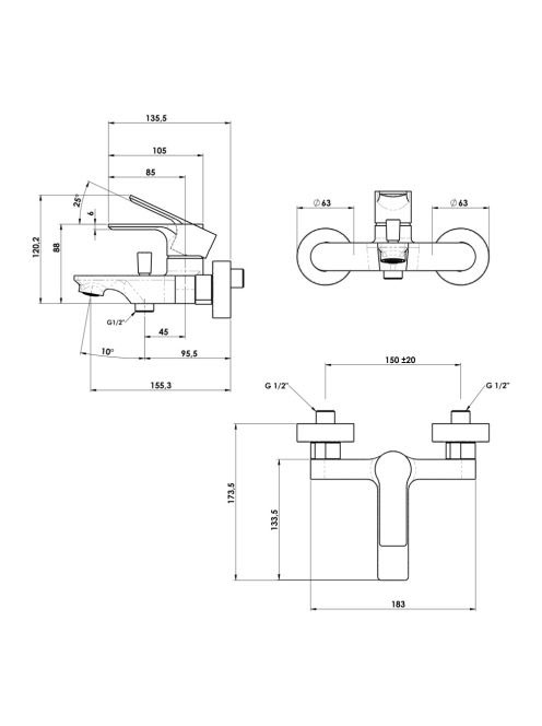 Sapho Pax fali kádtöltő csaptelep zuhanyváltóval, matt fehér