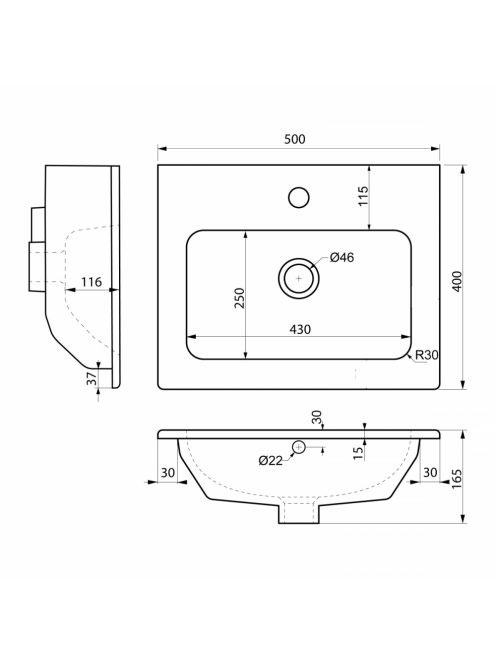 Sapho Practico 50x40 beépíthető kerámiamosdó, fehér 44050 -