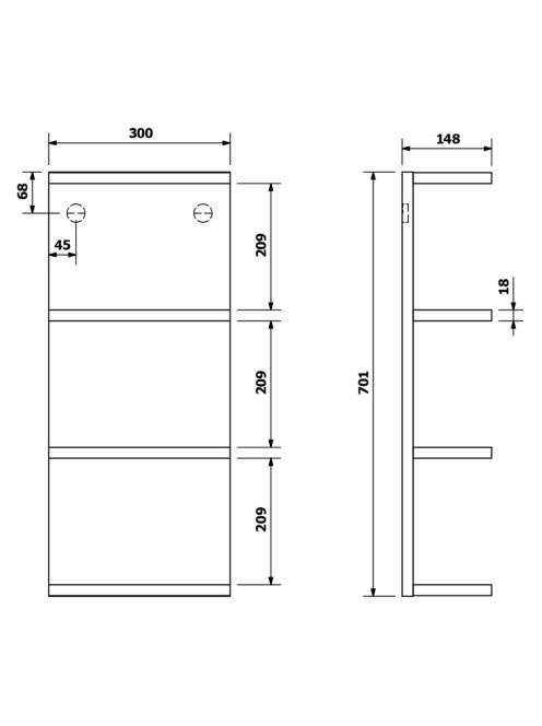 Sapho Riwa nyitott polcos szekrény 30x70x15 cm, bardini szil