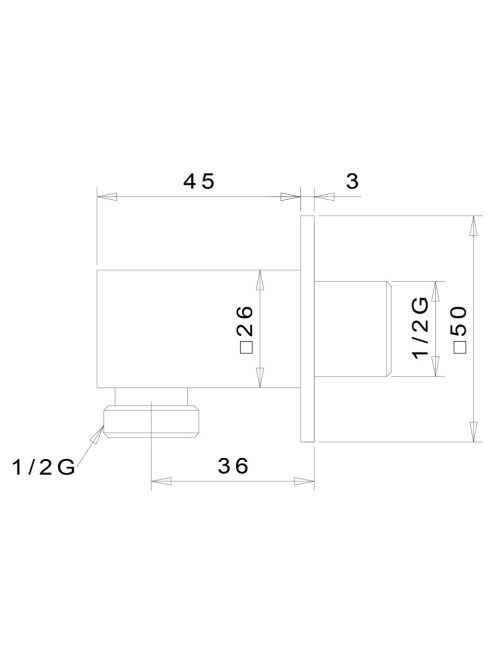Sapho szögletes zuhanycsatlakozó 1/2", matt fekete SG30