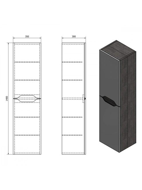 Sapho Wave II két ajtós fali szekrény 35x140x30 cm, jobbos/b