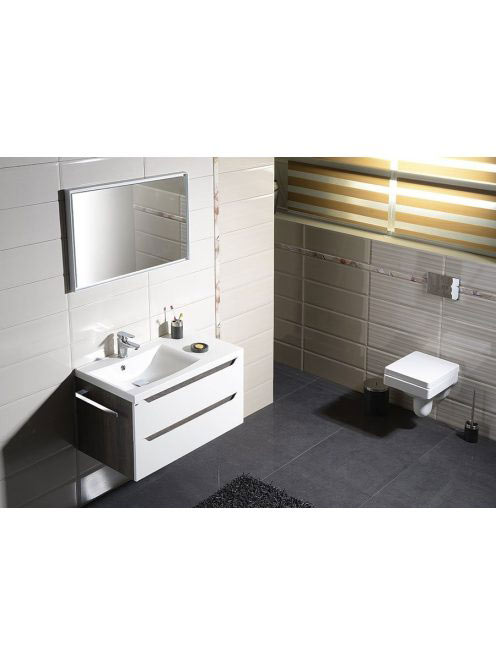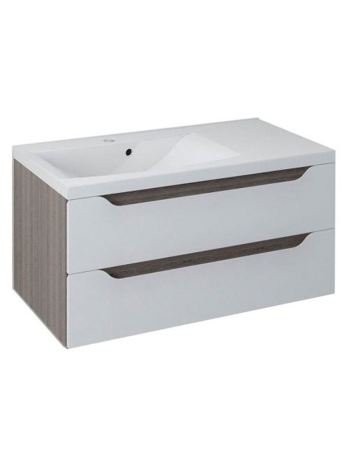 Sapho Wave II két fiókos mosdótartó szekrény pipererendezővel 90x45x48 cm, balos, fehér/mali wenge WA092-3021
