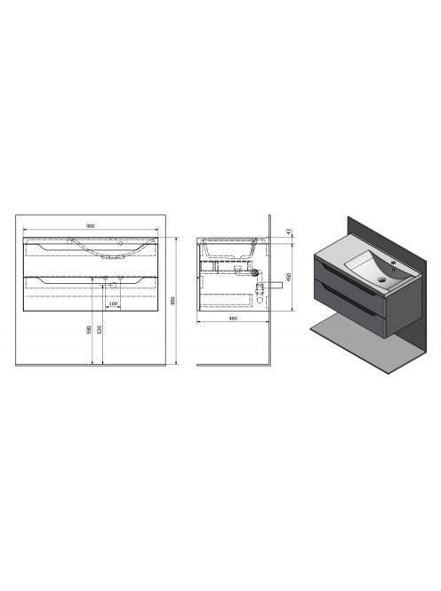 Sapho Wave II két fiókos mosdótartó szekrény pipererendezőveSapho Wave II két fiókos mosdótartó szekrény pipererendezőve
