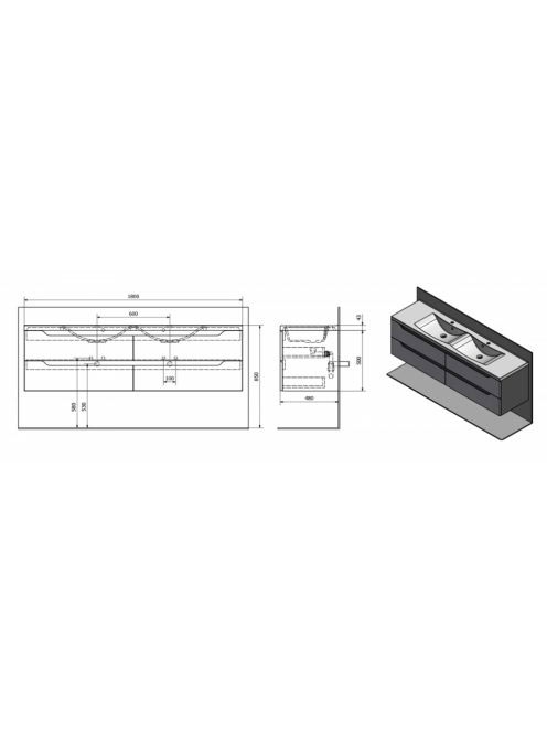 Sapho Wave II négy fiókos mosdótartó szekrény pipererendezővSapho Wave II négy fiókos mosdótartó szekrény pipererendezőv