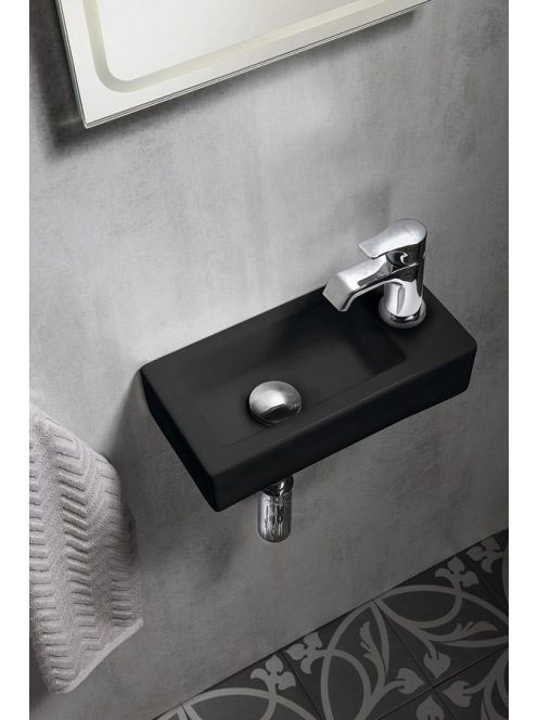 Sapho Zoe kerámiamosdó 37x18 cm, 1 csapfurattal, jobbos, matt fekete AR495B