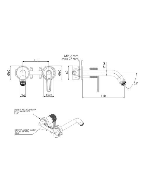 Sapho Bebé falba építhető egykaros csaptelep, króm BB018