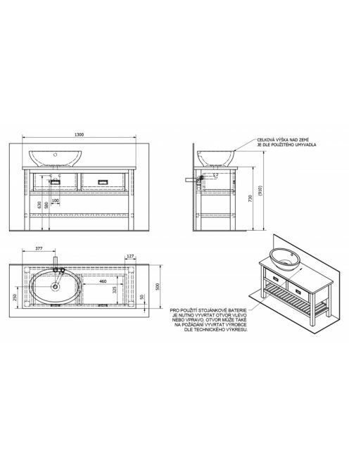 Sapho Brand 2 fiókos mosdótartó szekrény 130x73x50 cm, barnaSapho Brand 2 fiókos mosdótartó szekrény 130x73x50 cm, barna