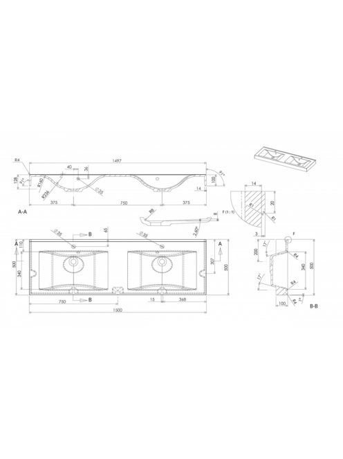 Sapho Flavia öntött márvány dupla mosdó 150x50 cm, szögletes