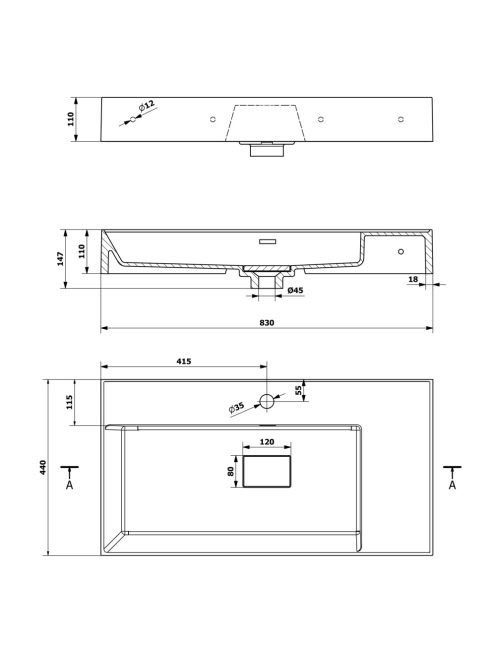 Sapho Godiva öntött márvány mosdó 83x44 cm, fehér GU083L - FSapho Godiva öntött márvány mosdó 83x44 cm, fehér GU083L - F