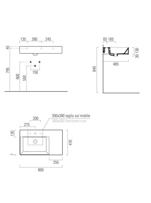 Sapho Gsi Kube X kerámia mosdó 1 csapfurattal 80x47 cm, Extr