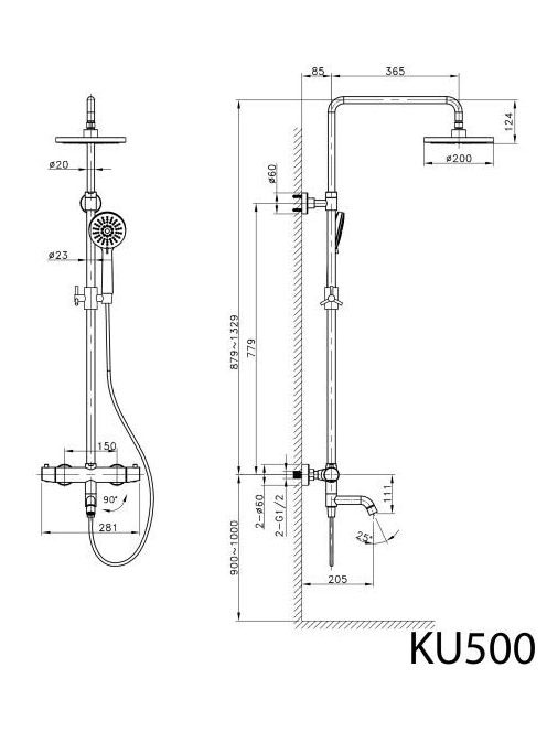 Sapho Kai zuhanyoszlop termosztátos csapteleppel, króm KU500