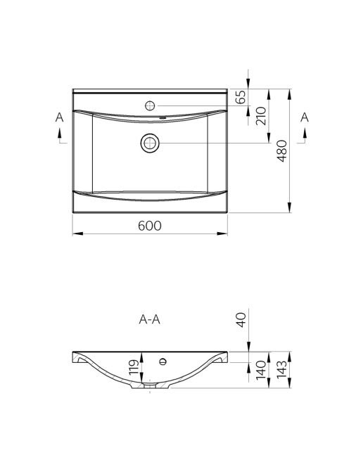 Sapho Luciola öntöttmárvány mosdó 60x48 cm túlfolyóval, fehé