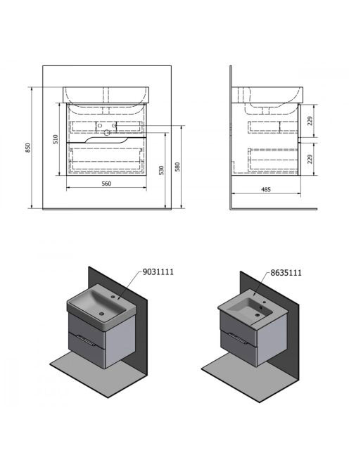 Sapho Mediena 2 fiókos mosdótartó szekrény 56x48,5 cm, matt
