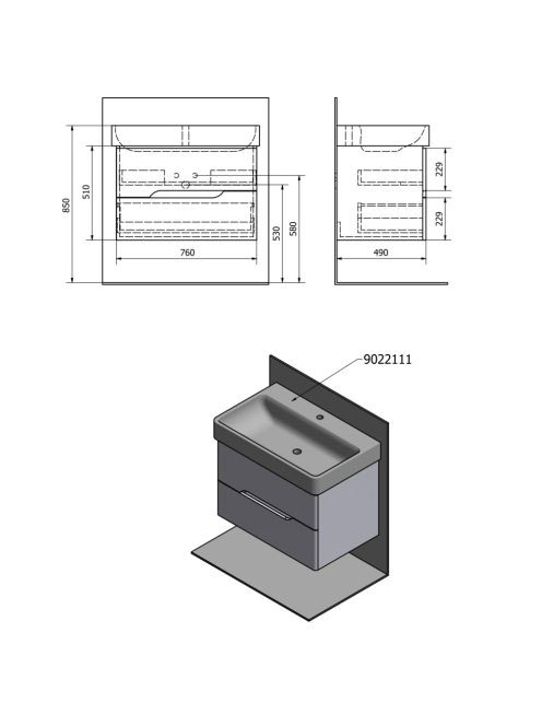 Sapho Mediena két fiókos mosdótartó szekrény pipererendezőve