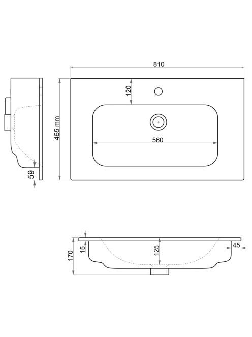 Sapho Sanovit Piedra beépíthető kerámiamosdó 1 csapfurattal,