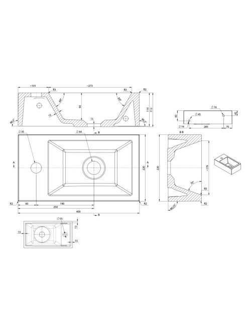 Sapho Small Amarok öntött márvány mosdó 40x22cm, balos, fehé